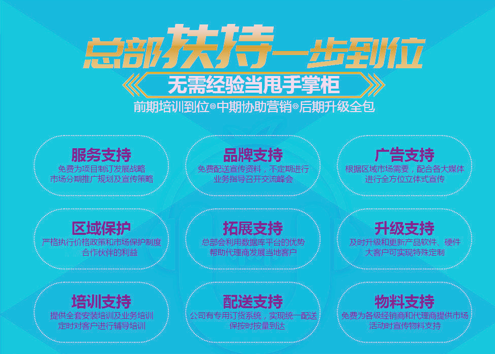 服務支持:免費為項目制定發展戰略、市場分期推廣規劃及宣傳策略。