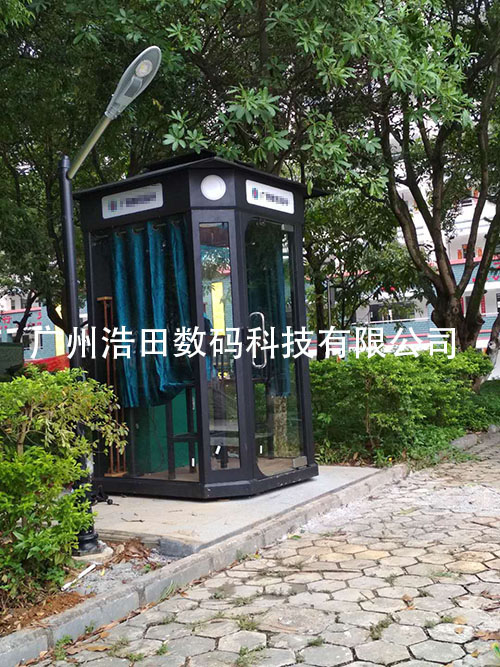 在淅淅瀝瀝的下雨天中,“浩田朗讀亭”設置地點——廣西某高中。經過整機安裝,貨車運輸,吊機指揮運作放在校道旁,從外觀看,“朗讀亭”比普通電話亭略大一些,造型新穎而美觀。朗讀亭’高3米,占地2.25平方米,把朗讀亭放置在園林綠蔭里,整個校園彌漫著濃濃的書香氛圍。