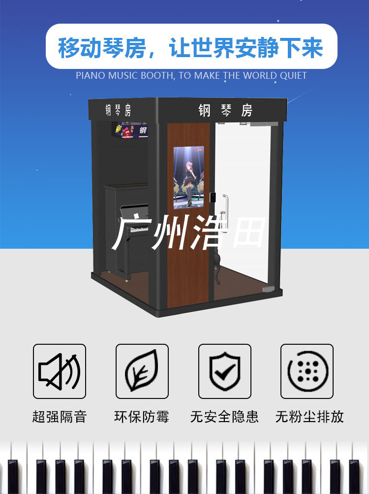 產(chǎn)品特點(diǎn):可以通過App和小程序?yàn)橛脩籼峁┒ㄎ伙@示,線上預(yù)約、掃碼開門、倉內(nèi)燈光、空調(diào)、凈化器自動(dòng)啟動(dòng),自動(dòng)記錄分析用戶的練琴數(shù)據(jù)并輸出建議指導(dǎo),用戶按使用時(shí)長自助結(jié)算,是一款很實(shí)用且便捷的自助智慧琴房,浩田自助琴房令充滿科技感.